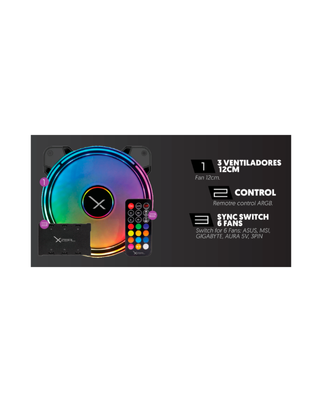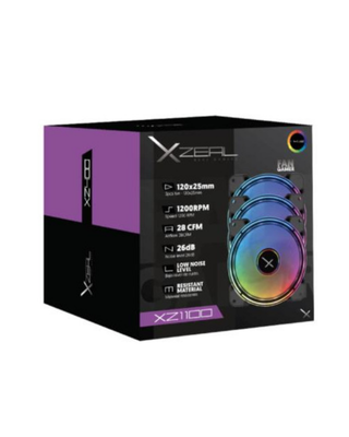 Kit de 3 Ventiladores XZEAL RGB, 120mm, 1200 RPM, Color Negro, XZVE100B