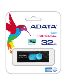Memoria USB Adata AUV220, 32GB, Color Negro-Azul, Retractil
