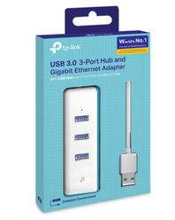 Hub TP-Link UE330, 3 Puertos USB 3.2, 1 puerto RJ45, 1000 Mbit/s, Blanco